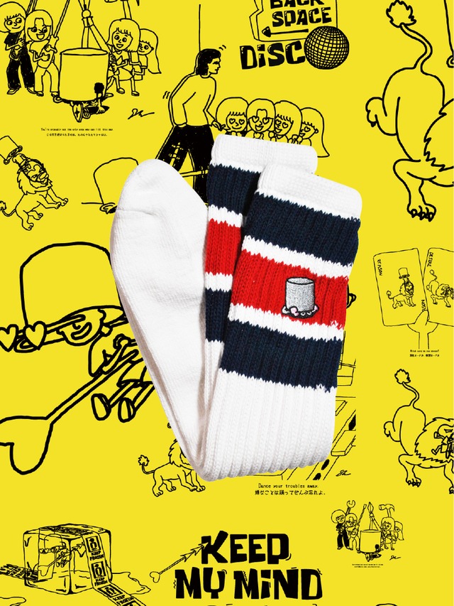 鍋を被ったシャーくんを刺繍で施した、 表糸USAコットン100%(ライン部分は除く)のチューブソックス。 これぞ“アメリカンクラシック”なソックスです。 かかとがないので誰にでもフィットするユニセックスアイテムです。 商品詳細 綿82%/ポリエステル16%/ポリウレタン2% 総パイル仕様