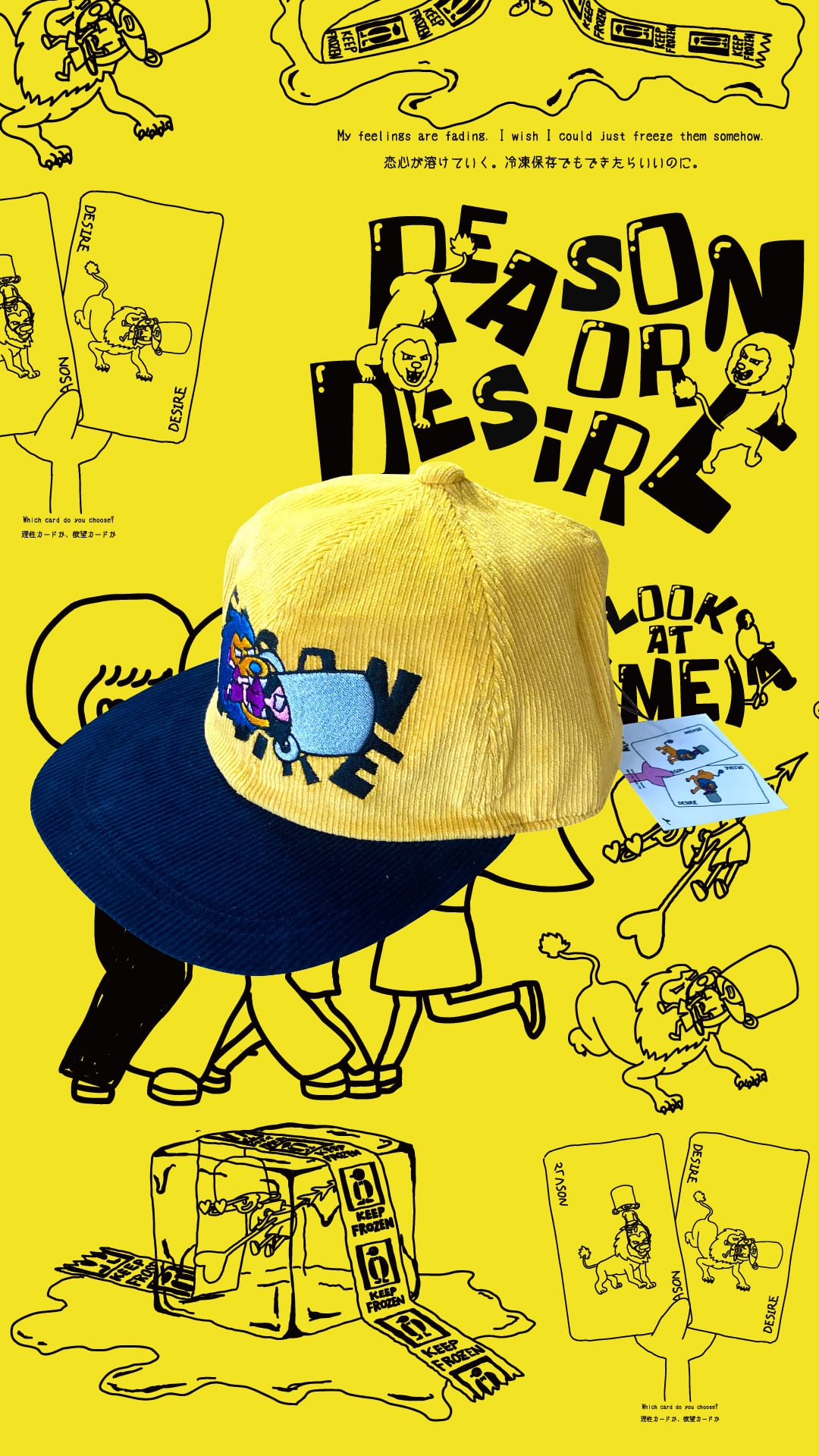 作品「REASON OR DESIRE.」で登場するライオンを元にデザインされたキャップ。